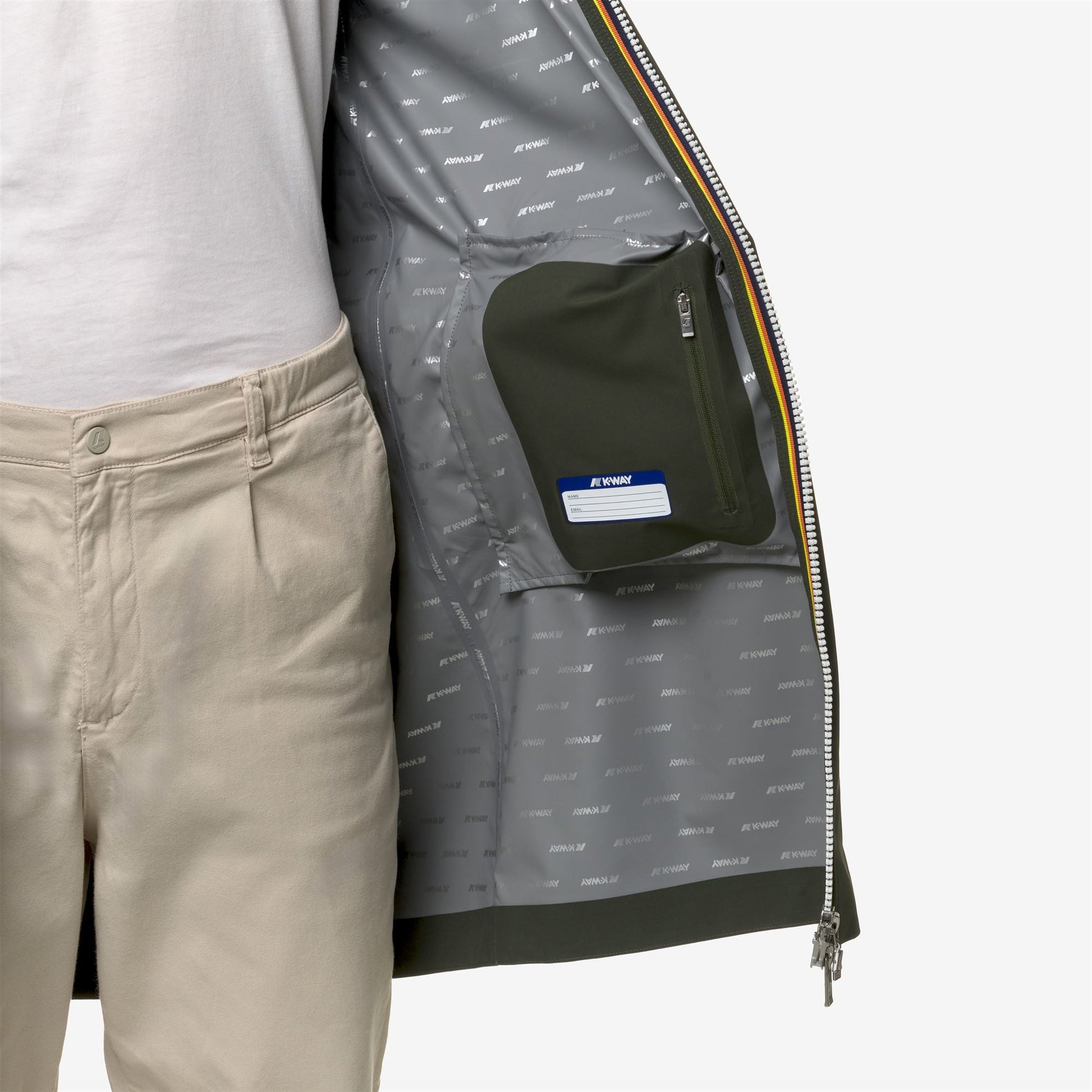 Thomas est une veste pour homme de longueur trois-quarts avec un design contemporain en ligne droite, parfaite pour les saisons de transition. Elle est fabriquée en tissu technique extensible qui permet une liberté de mouvement tout en offrant une protection contre la pluie et le vent, avec une résistance à l'eau allant jusqu'à 10000 mm. L'intérieur est doublé d'une membrane isolante avec une impression de lettres K-Way en argent sur l'ensemble. Des détails fonctionnels, tels que des poches zippées, une capuche ajustable enveloppante et des poignets élastiques assurent un ajustement facile et confortable.
